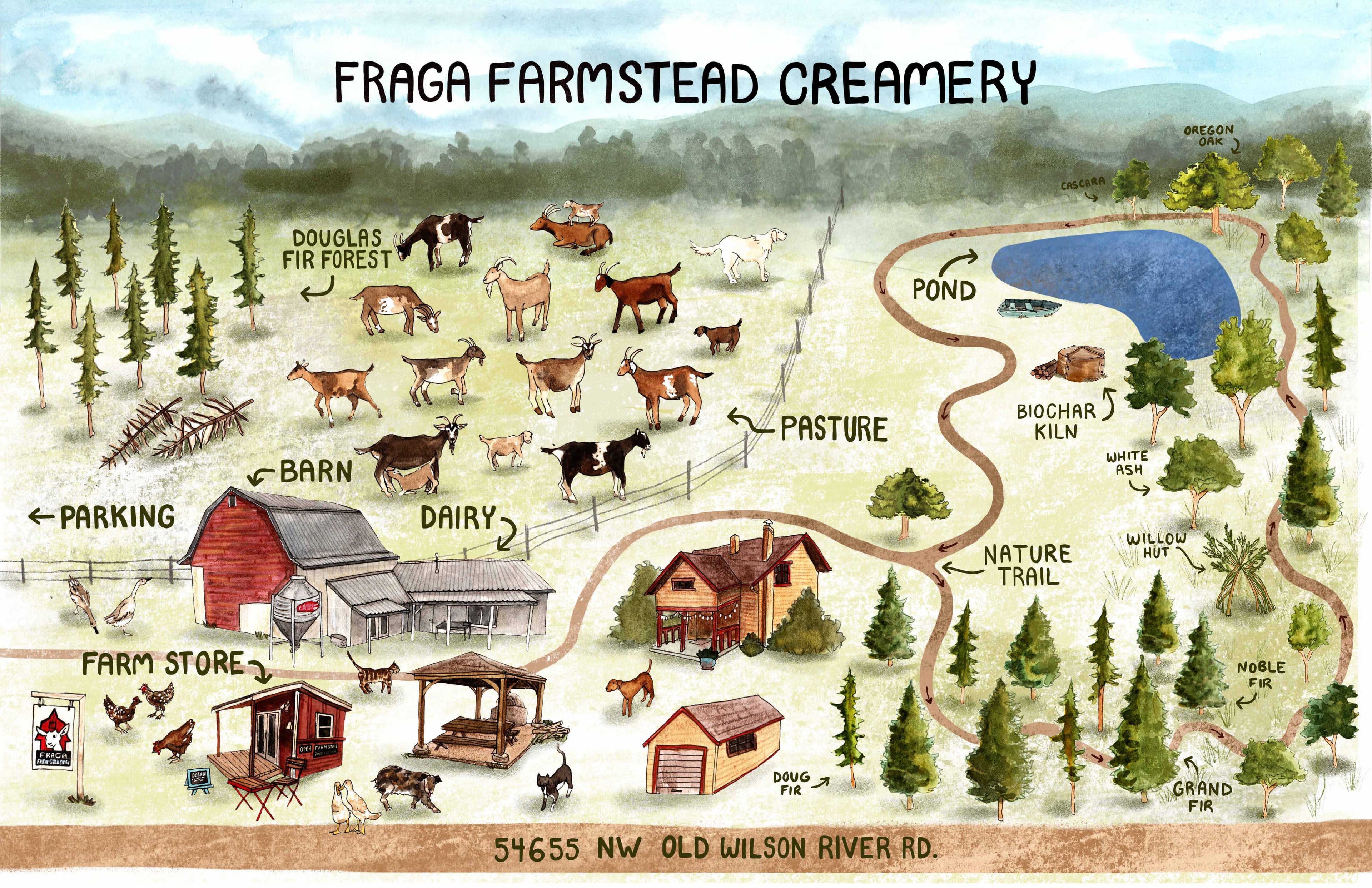 Fraga Farmstead Creamery is located in Gales Creek Valley, a tributary of the Tualatin River, half an hour west of Portland. We share the valley with vineyards, orchards and other organic farms and look forward to farm to table dinners with locally sourced produce.