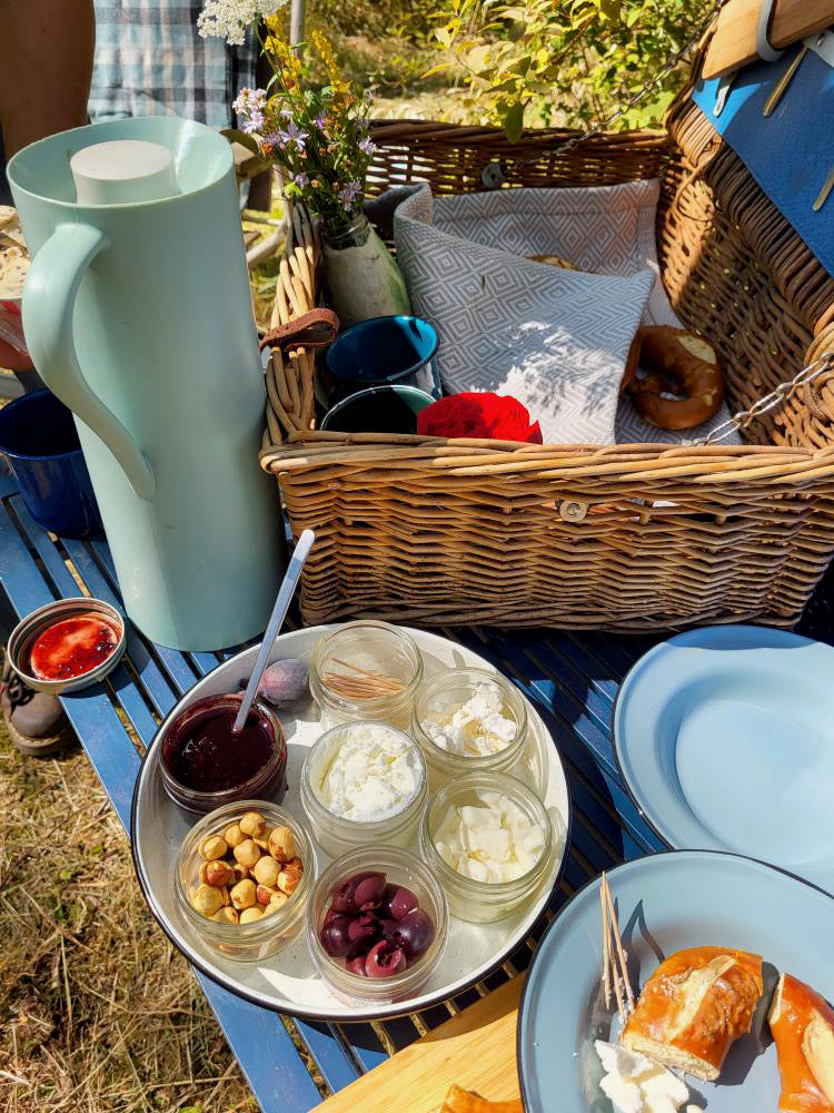 At the midpoint, we’ll settle under a grand oak tree for a hearty farm-style picnic featuring a selection of our wonderful goat cheeses, seasonal fruit, and sourdough pretzels. For dessert, enjoy a “Farmer Affogato”: rich goat milk gelato with a pour-over of hot coffee served in a rustic camp mug.