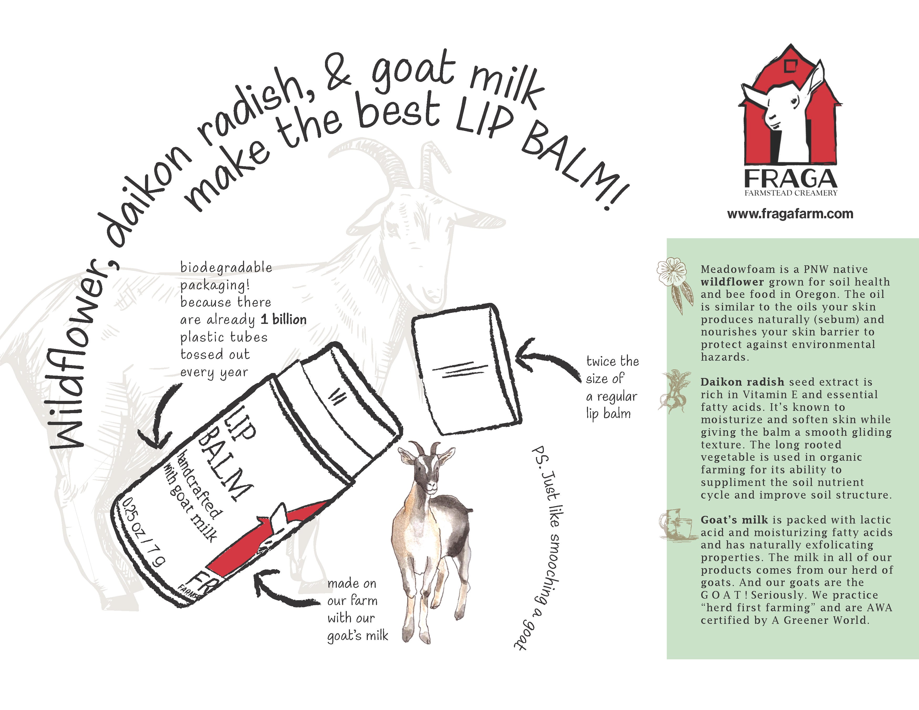 "We love the Fraga Farm lip balms! They are our favorite. We've been looking for an eco lip product that was TRULY eco for so long and this is the best!! The fact that they are locally sourced and we can purchase several great flavors is such a bonus! (Rose Tint is my fave! Milk & Honey is my daughter's favorite.) The balm itself is the perfect texture and consistency - it's not too waxy, thin, or grainy like some other eco balms we've tried. And we really appreciate the intentional biodegradable plastic-free packaging. Thank you! We're excited for any new products from the farm. We know they, too, are going to be high quality, locally sourced, intentional, eco products."